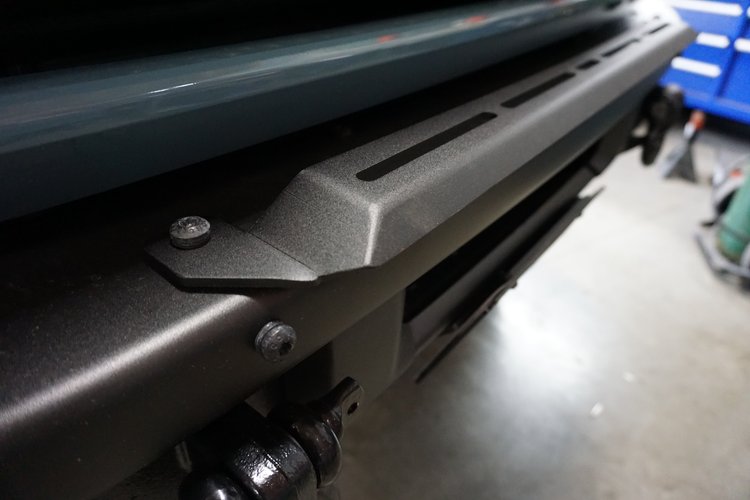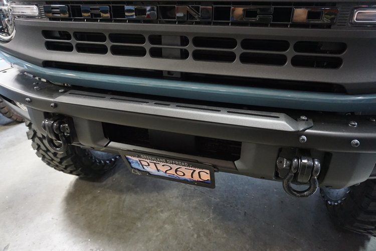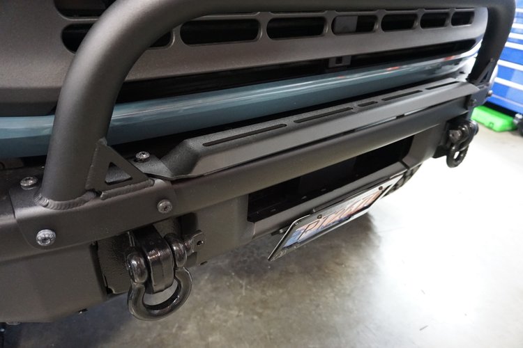 Our Aluminum Bronco bumper light mount is CNC cut and formed from 3/16" Aluminum, TIG welded, then powdercoated textured black for a durable finish that will never rust.