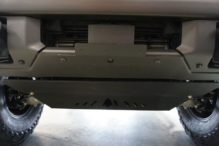 Our License plate relocation bracket moves your front plate from in front of the grille to the bottom of the bumper. Only works with the factory modular steel front bumper