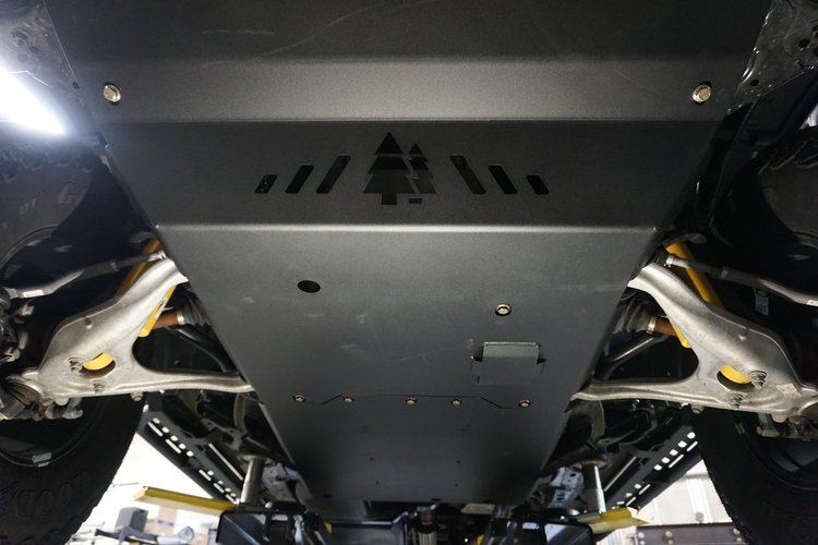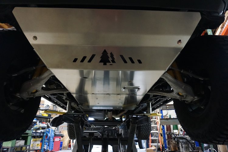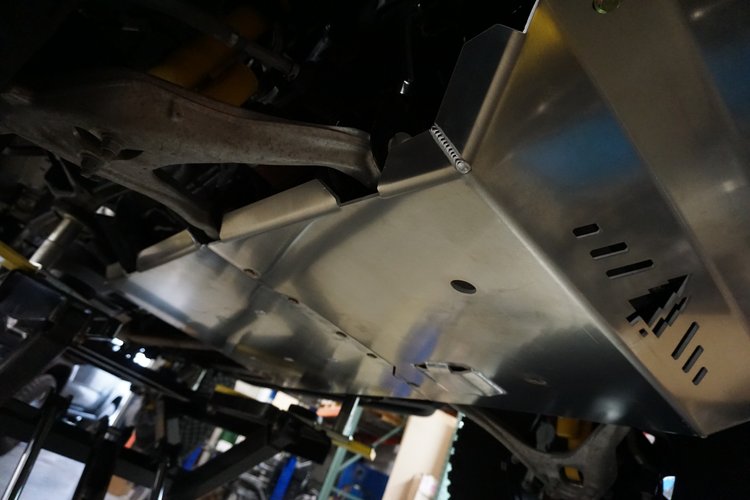 - Engine skid plate bolts to the frame using 6 supplied yellow zinc grade 8 flange bolts