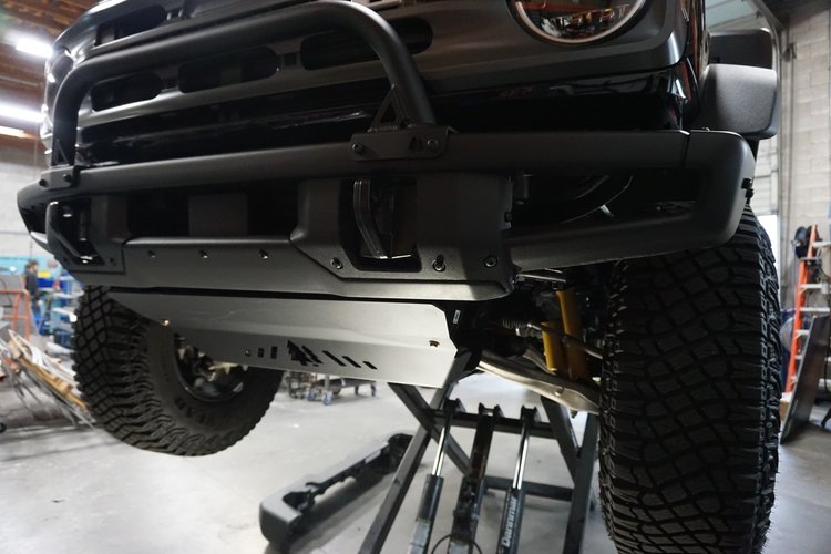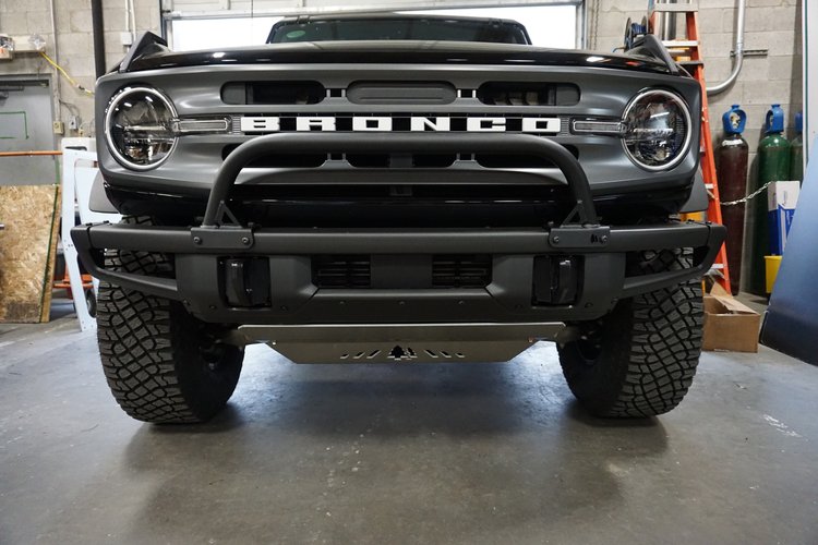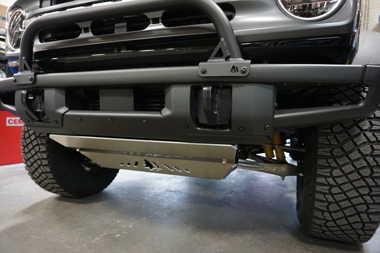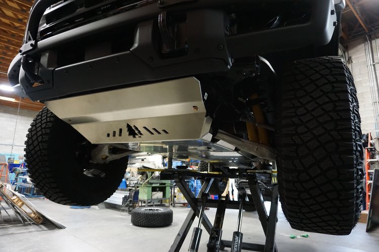 Our Aluminum full engine skid offers maximum protection and ground clearance to the underside of your Bronco CNC cut and formed from 1/4" Aluminum. Fully TIG welded.