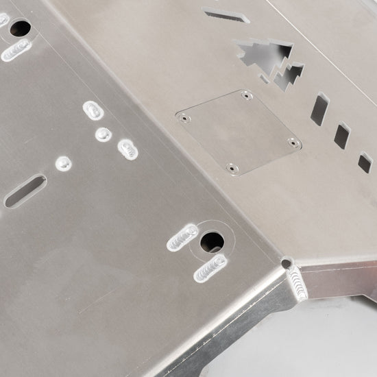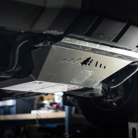 Our Aluminum full engine skid offers maximum protection and ground clearance to the underside of your 2022+ TUNDRA. CAD designed, CNC cut, formed and TIG welded.