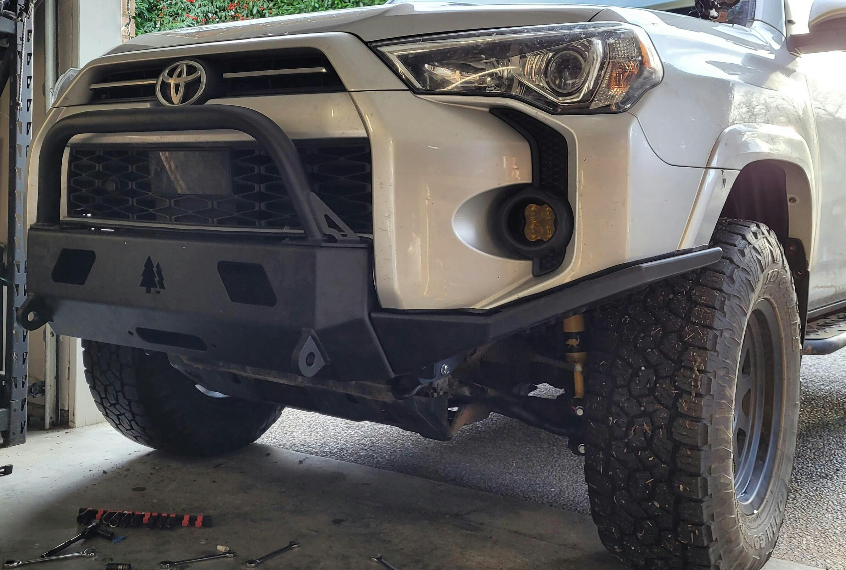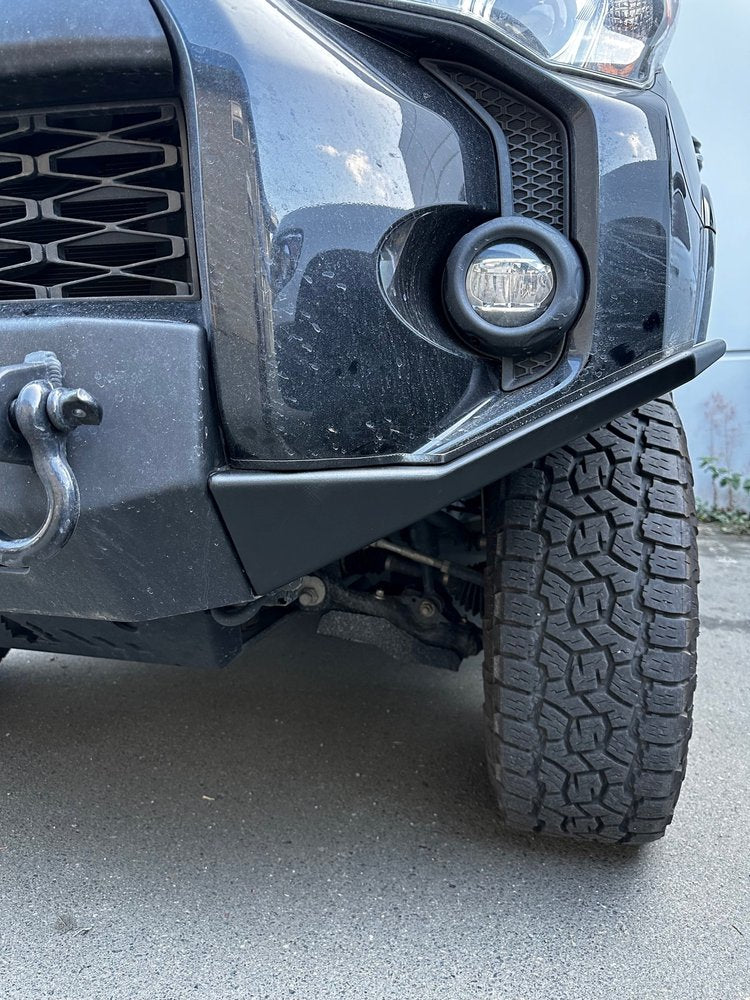 Our 5th Gen 4Runner High Clearance Wings bolt up to our Aluminum Stump bumper to offer added protection and clearance to the front corners of your truck.