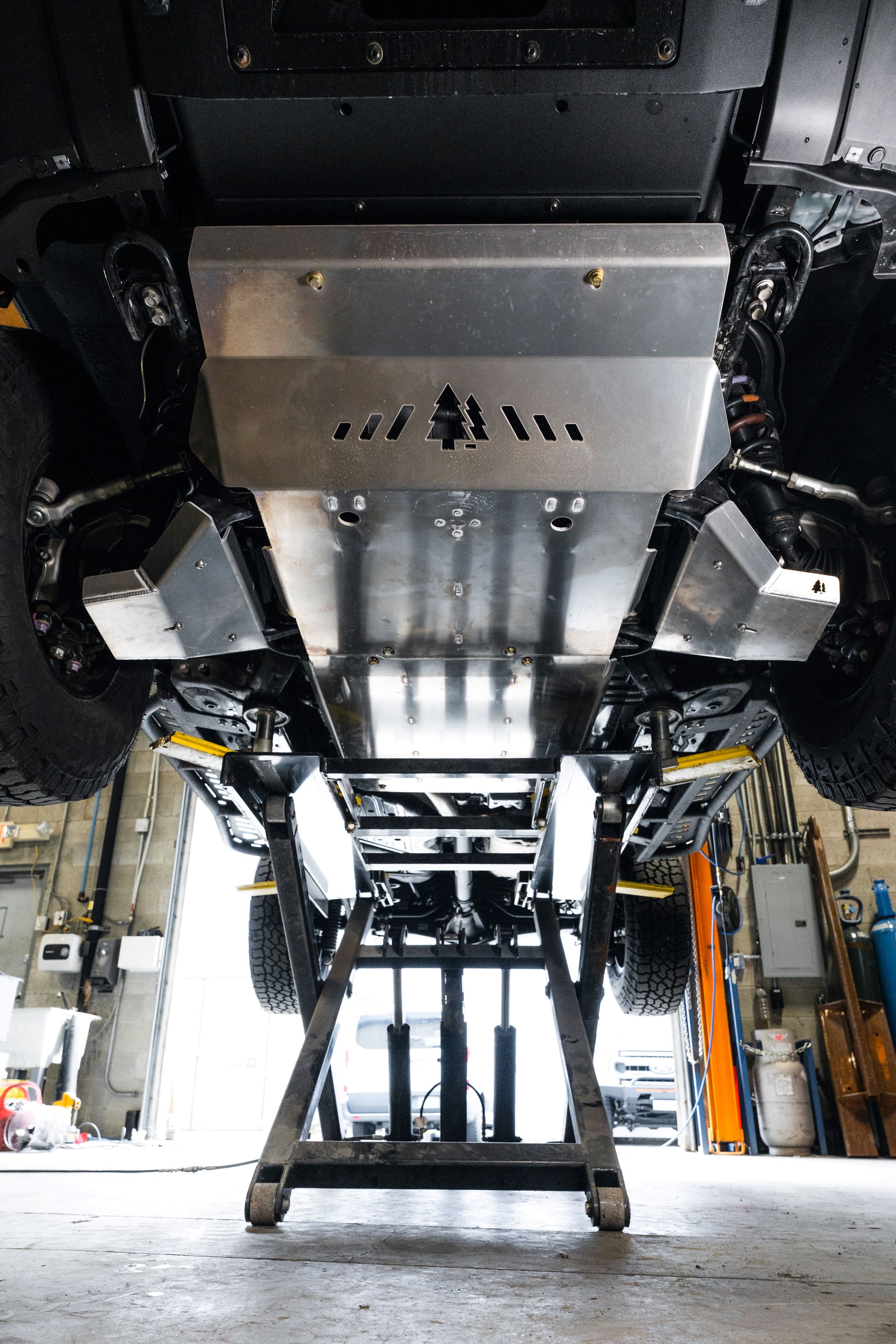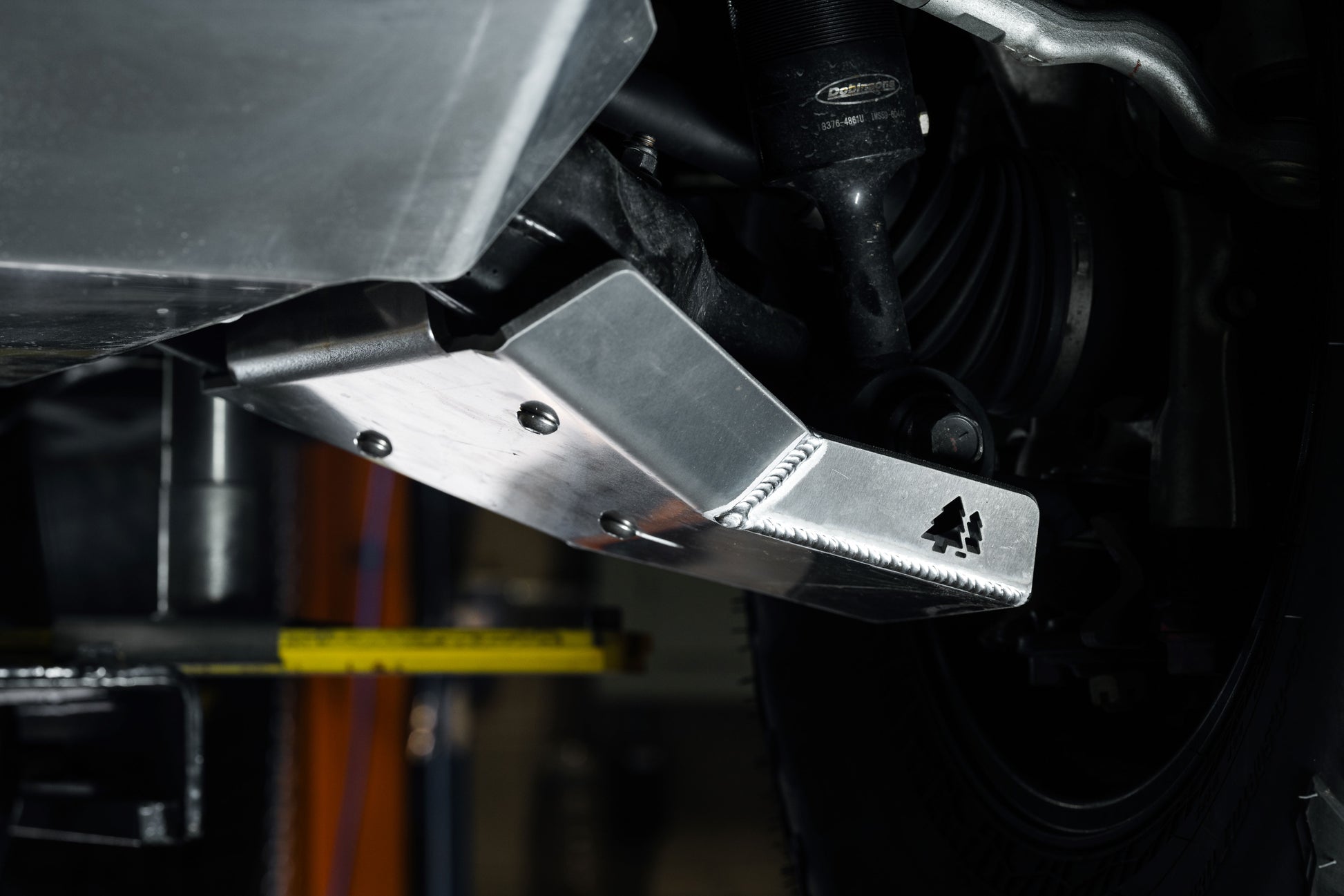 Our lower control arm skid plates are CNC cut and formed from 1/4” aluminum then fully TIG welded for strength and durability.
