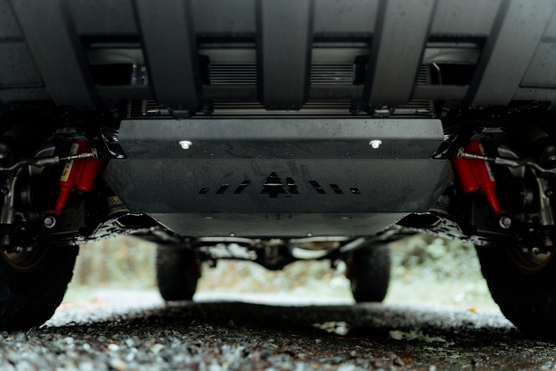 - Extends past factory skid plate at the front to integrate with both stock and aftermarket bumpers